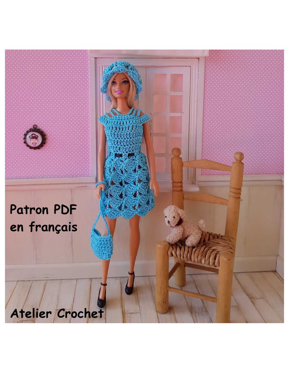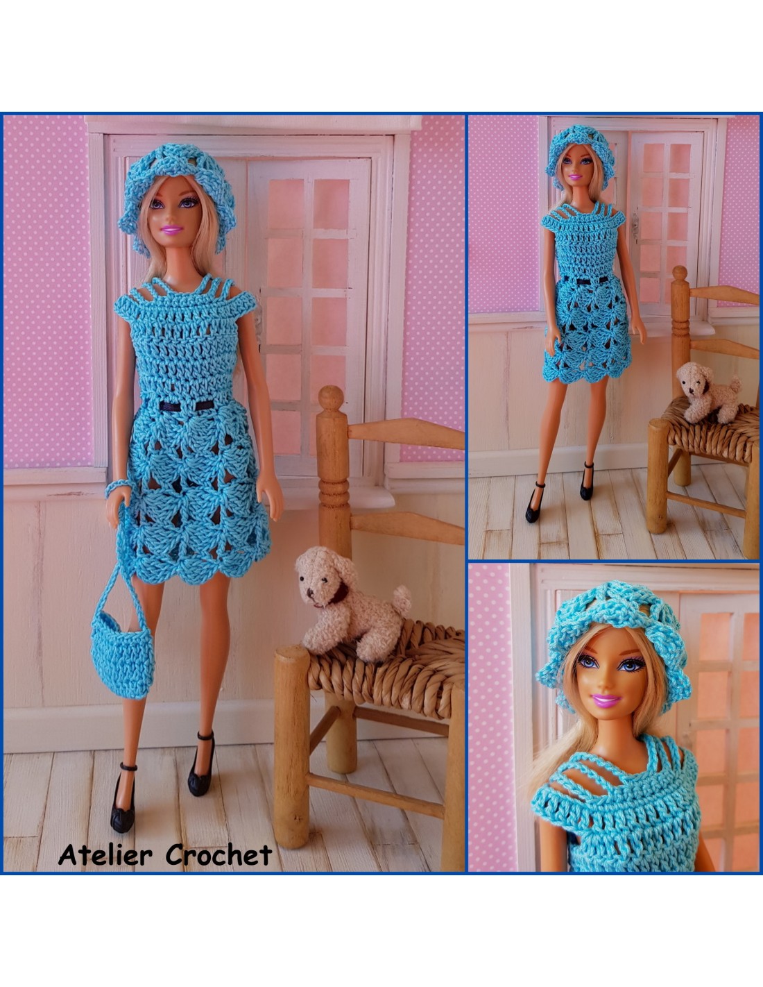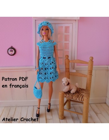 Patron (Tuto) PDF d'un ensemble au crochet pour poupée Barbie.