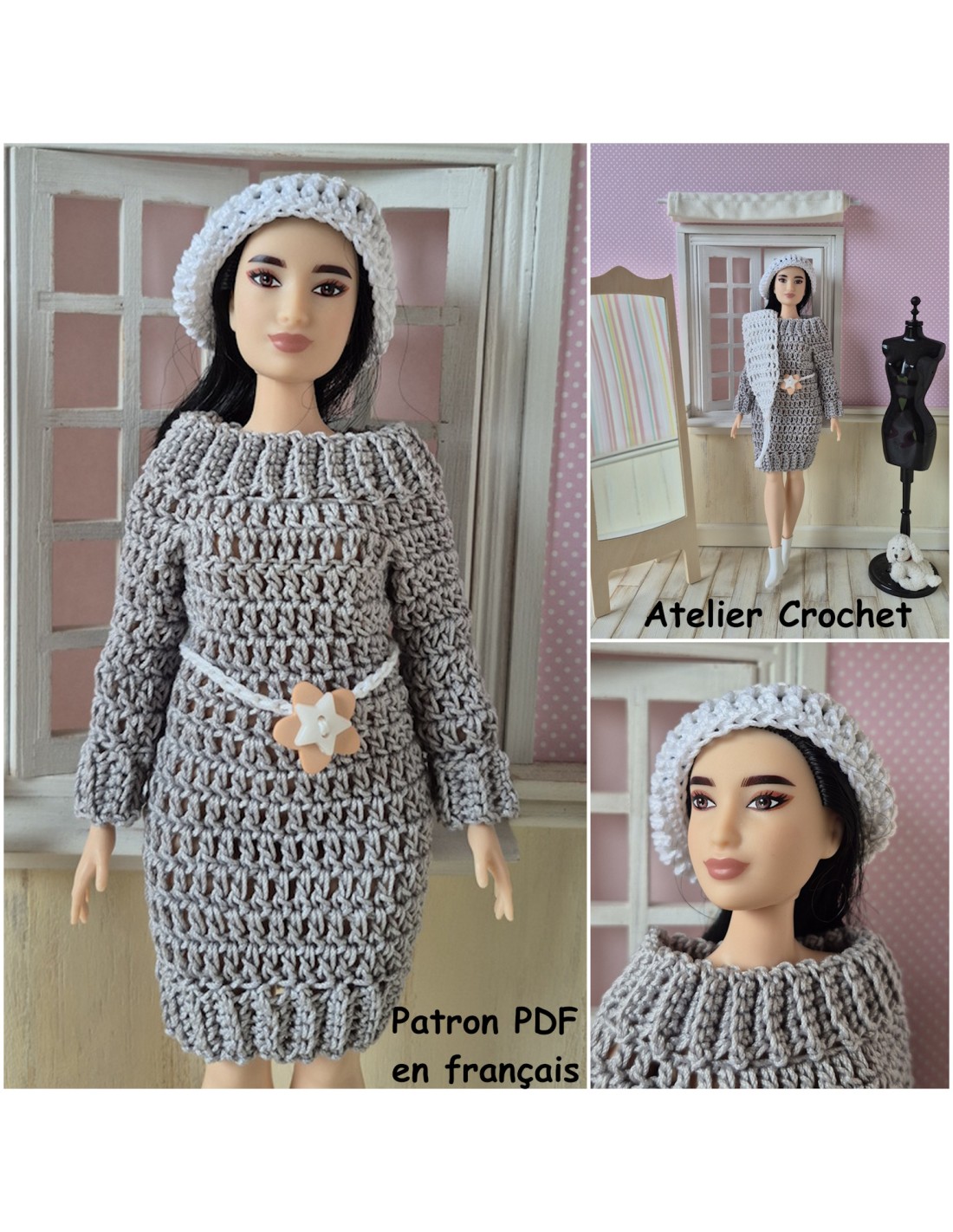Patron (Tuto) PDF d'un ensemble au crochet pour poupée Barbie Curvy.