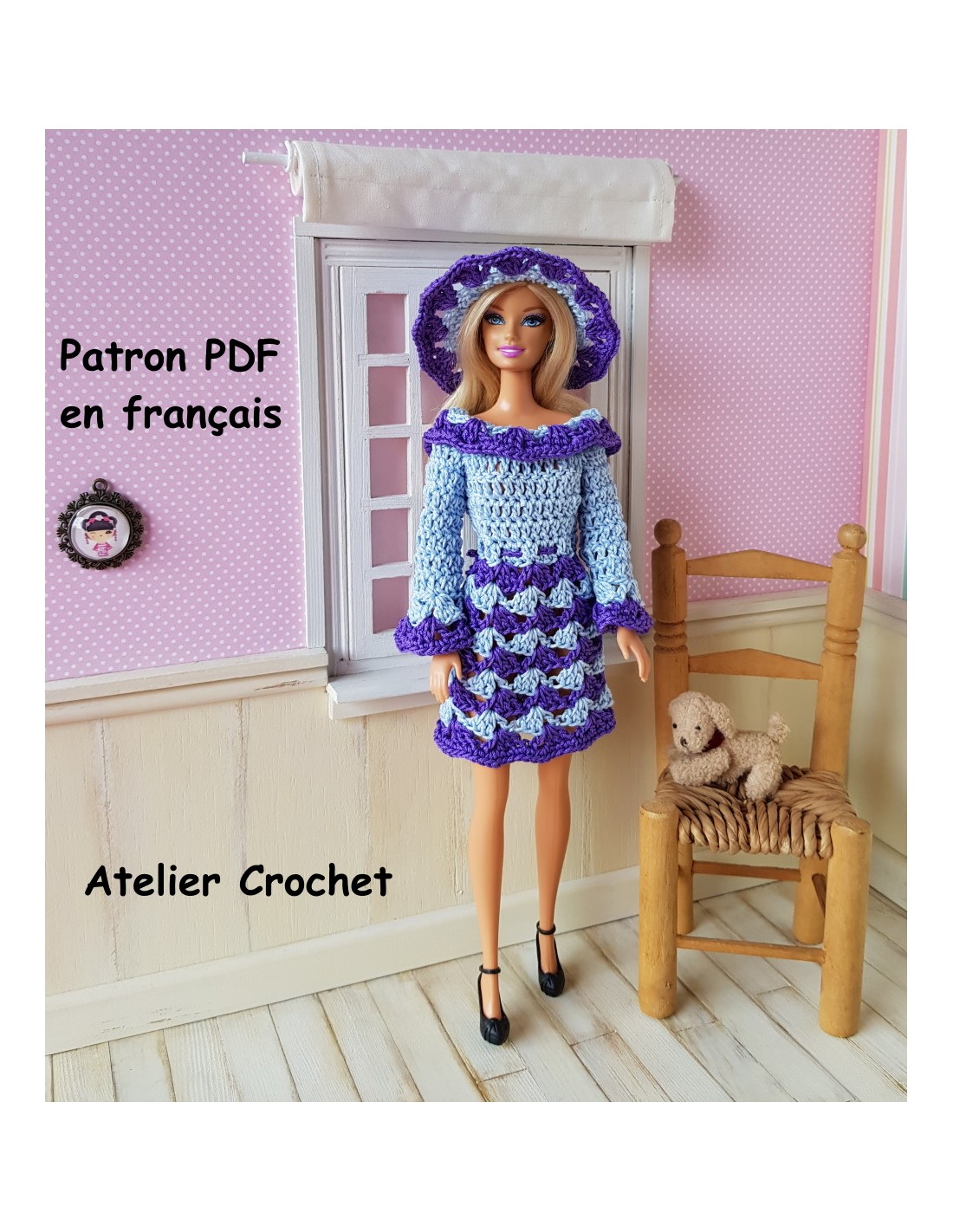 Robe à manches longues et chapeau  patron PDF de crochet pour poupée Barbie