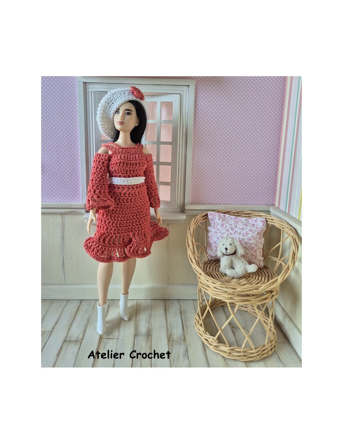 Ensemble au crochet pour poupée mannequin Barbie Curvy.